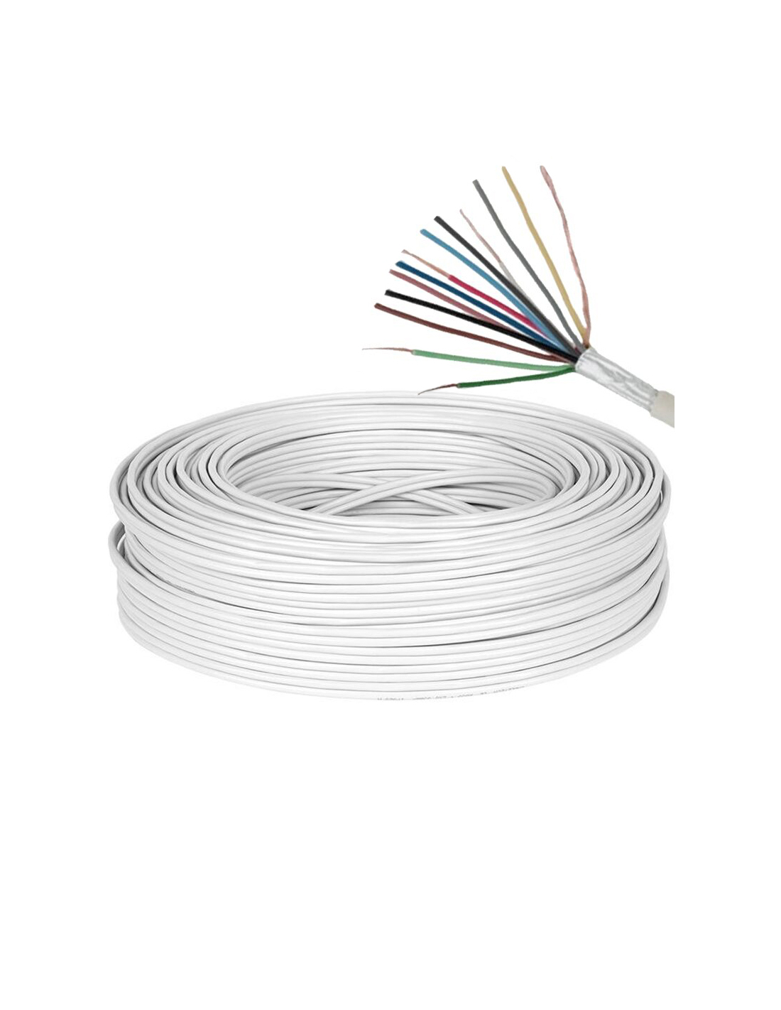 Cablu de alarma ecranat, structura 12 x 0,22mm, conductor Cu flexibil, material izolatie PVC alb, antiflacara. Rola 100m