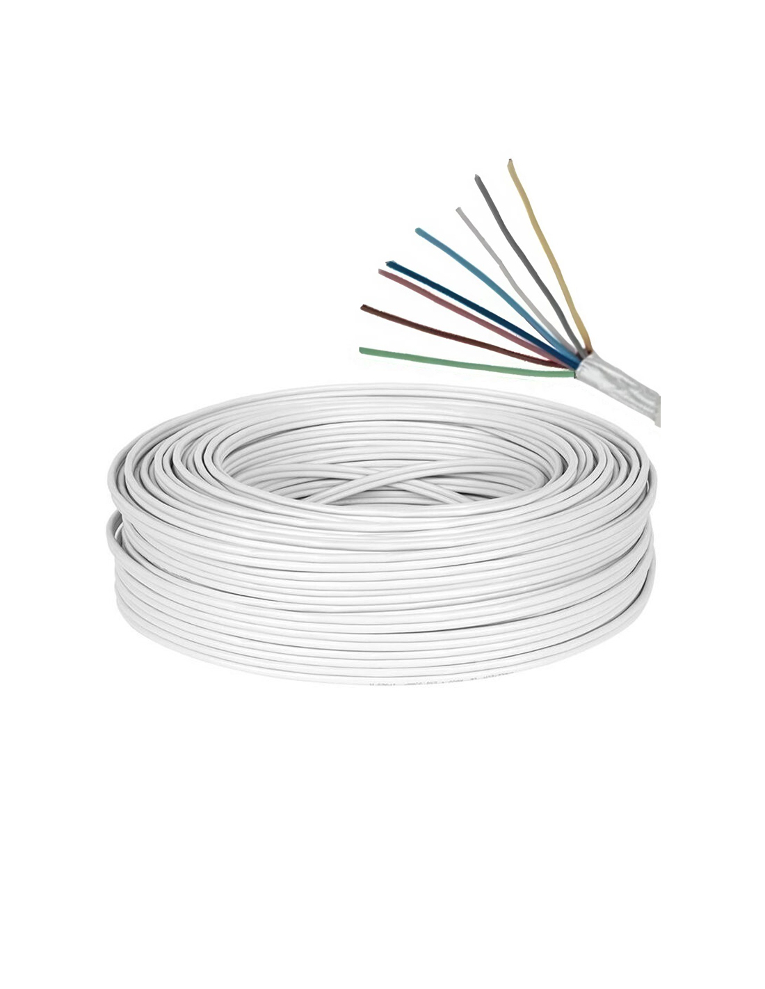 Cablu de alarma ecranat, structura 8 x 0,22mm, conductor Cu flexibil, material izolatie PVC alb, antiflacara. Rola 100m