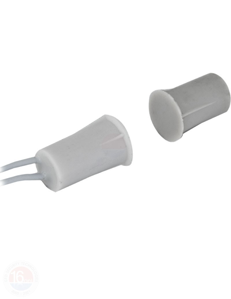 Contact magnetic incastrabil de mica putere destinat semnalizarii starii unei usi. Contactul este deschis in prezenta magnetului (NO).